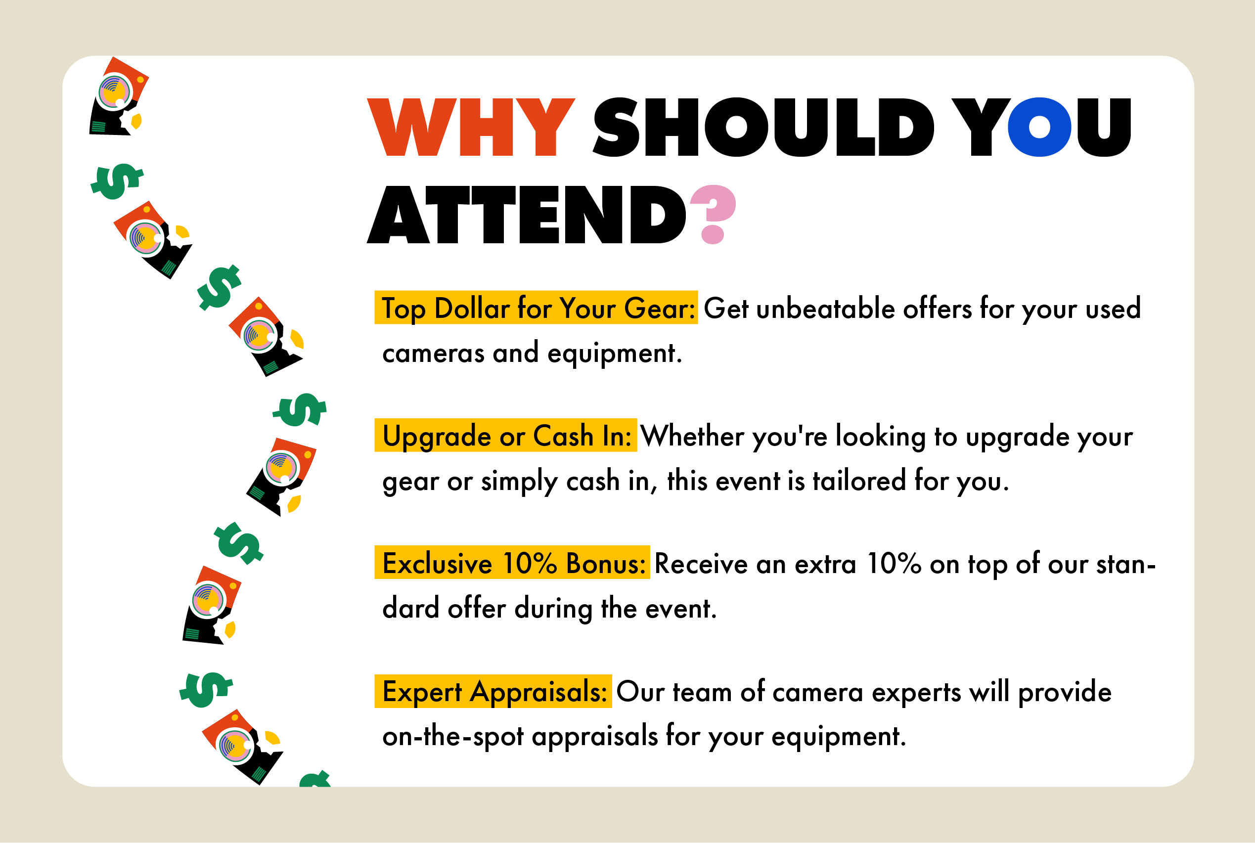 Mention the #CASH4CAMERASNB event in the "More Information" section